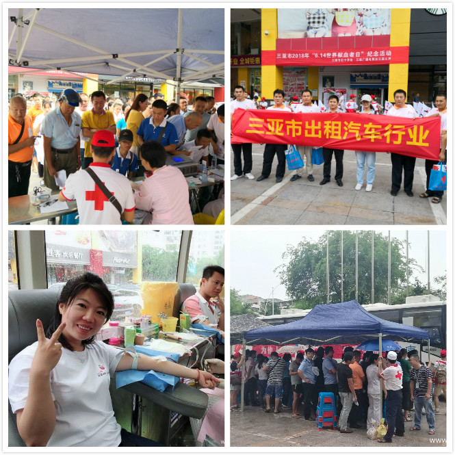 2、6.14世界献血者日活动前,三亚市红十字会发布无偿献血志愿者招募,号召广大群众参与无偿献血,并联合三亚广播电视台,通过三亚之声栏目,向听众宣传无偿献血知识,号召大家踊跃报名参与。6月14日上午8点,市红十字会联合广播电视台在明珠广场开展大型无偿献血纪念活动,党政机关、企事业单位、社会爱心人士共计300多人参与此次活动,其中不乏有通过三亚之声报名的出租车公司、公交公司的爱心司机。
