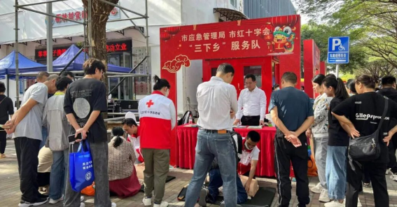 1月30日,在海棠区龙海大社区参加三亚市2024年“我们的中国梦”——文化进万家暨“三下乡”集中服务示范活动,为群众教学心肺复苏等应急救护技能,发放宣传资料。
