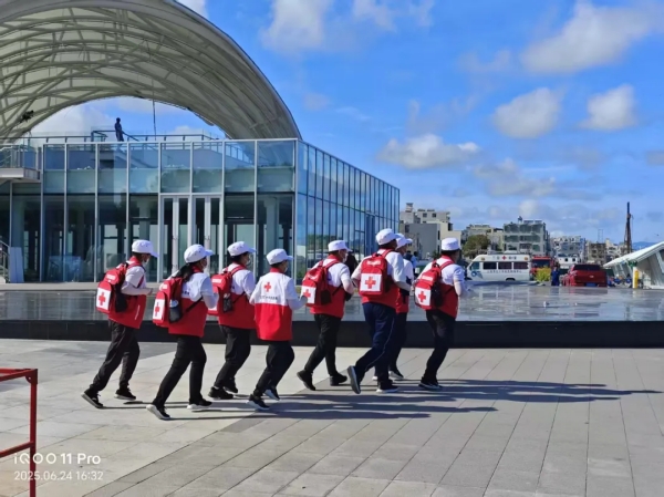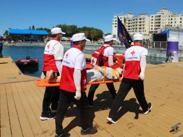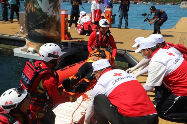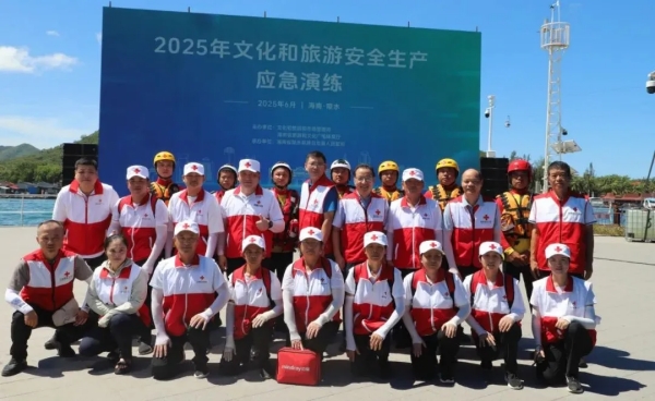 2025年6月25日,2025年全国旅游与文化安全生产应急演练在海南省陵水黎族自治县南湾猴岛生态旅游区举办,三亚市红十字会派出10人应急救护志愿者和6名水上救援队员,参与景区暴力袭击突发事件快速处置、海上渔排突发火情救援、游船倾侧人员落水海空搜救三个科目的演练,圆满完成任务。