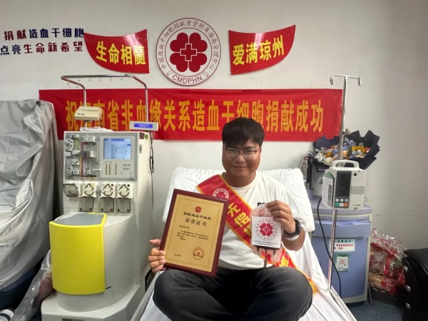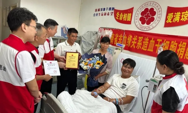 2025年8月1日,在海口市人民医院的造血干细胞采集室内,来自三亚的25岁建筑工程师小王(化名),成功捐献了290毫升造血干细胞混悬液。这份珍贵的“生命种子”已启程,为一位素不相识的血液病患者点燃重生的希望。小王也成为全国第20753例、海南省第226例、三亚市第35例造血干细胞捐献者。