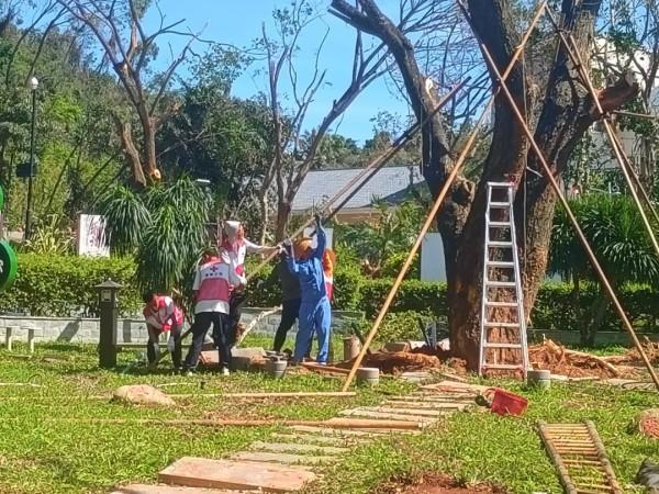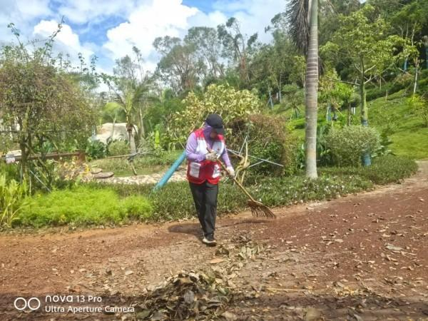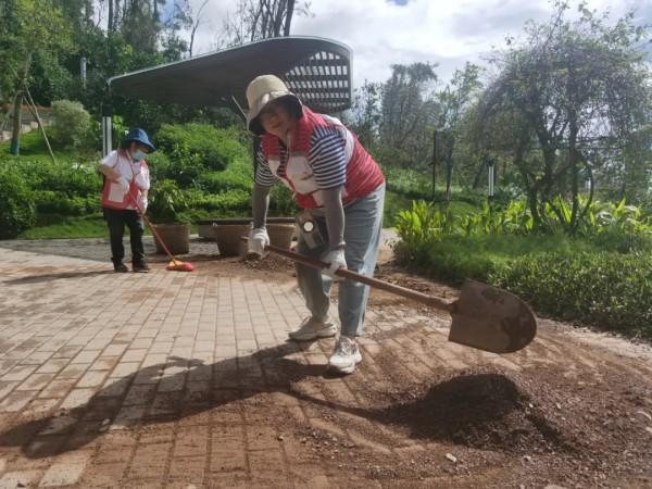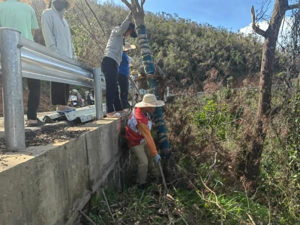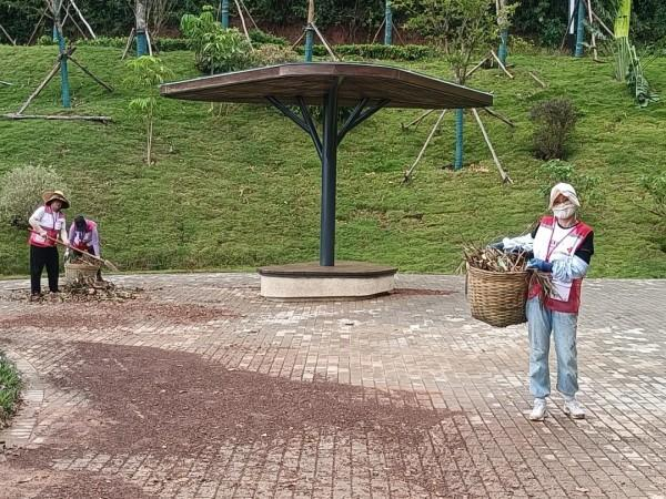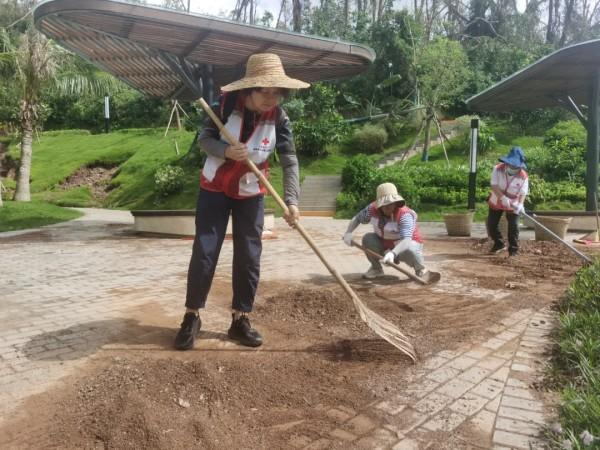 9月1日全天继续在临春岭公园清扫枯枝落叶,扶起倒伏树木,重新培土种植。
