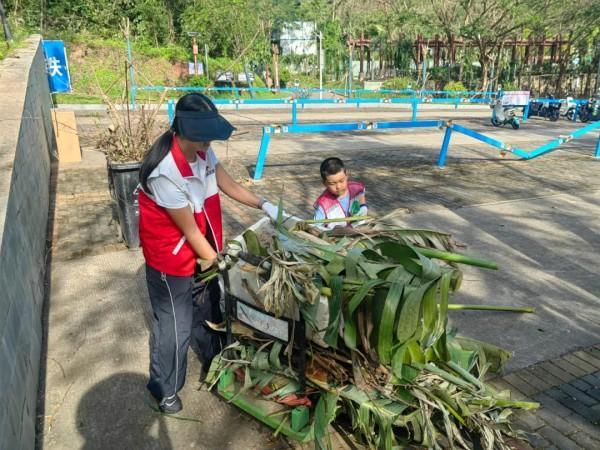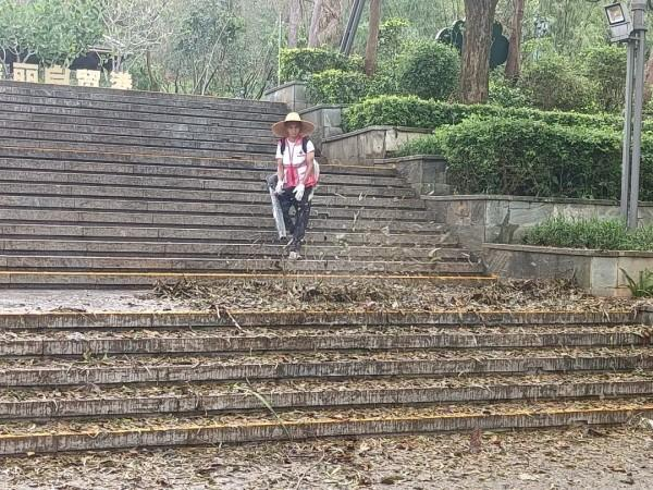 8月31日全天,在临春岭公园清扫、装运锯断倒伏的树干和折枝落叶,用汗水重燃公园生机。