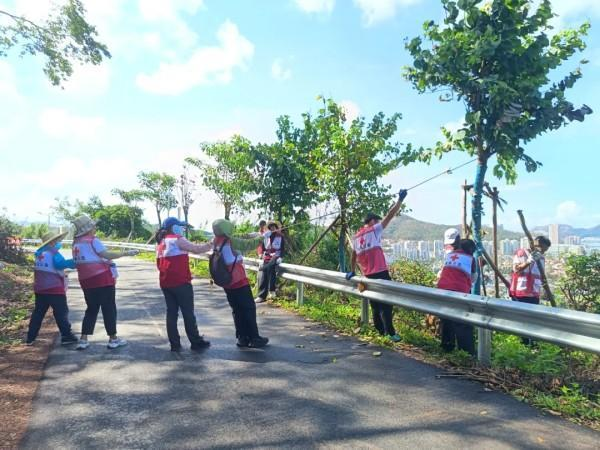 三亚博爱志愿者服务中心响应号召,继续组织红十字应急救护、无偿献血、遗体器官捐献和学雷锋志愿服务队的队员接续奋战,搬运锯断倒伏的树干、清扫装运折枝落叶,用汗水重燃城市生机。风雨无情,但人间有爱!