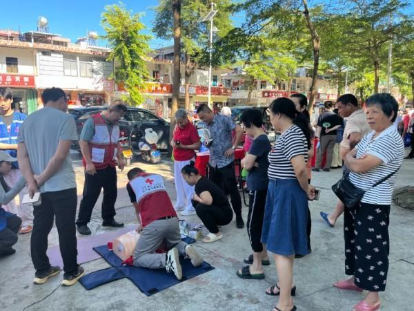 在立才社区和榆亚大社区的“急救知识地摊”前,志愿者用模型演示急救动作,发放宣传手册,吸引附近居民、游客驻足学习,一位游客说:“来三亚旅游还能学到急救技能,这份‘意外收获’太实用了!”
