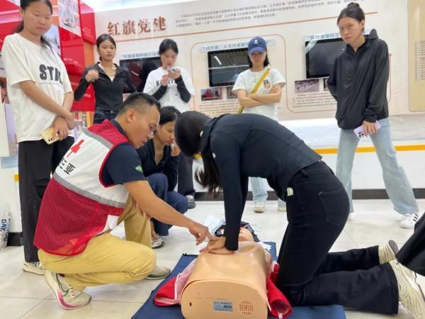 在第四中学凤凰校区,急救安全屋培训师资刘婷婷通过“理论讲解+模拟操作”,传授心肺复苏、海姆立克急救法和创伤包扎的方法,50名学员现场实操练习,掌握基础急救技能。