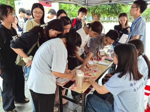 在“盲盒知识问答”区,大家随机抽取献血相关题目作答,答对即可获得印章;“谣言粉碎机”环节通过现场辩论的形式,针对性破解“献血会导致贫血”“献血影响免疫力”等不实传言,强化科学认知;“献血卡拼图”与“血型匹配”游戏则以动手实践的方式,让参与者直观了解献血流程与血型常识,寓教于乐;“爱心接力站”鼓励师生写下公益寄语,传递对无偿献血事业的支持与祝福;集赞成功的参与者还能兑换纪念品,让爱心收获双重回馈。