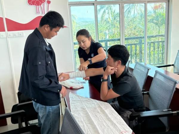 此次培训聚焦“实用、实战、实效”,精心设计了理论教学、实操训练与模拟演练三大模块。课堂上,学员们系统学习突发事件处置规范,明晰自救互救的核心原则;实操环节中,大家亲手操练简单救援工具,掌握止血、包扎、固定等关键技能,在三亚市红十字救援中心专业教官的指导下纠正每一个动作细节;而培训收尾的模拟地震实操演练,更是将所学知识全面转化为实战能力——从险情判断、人员疏散到伤员救治、现场协同,学员们沉着应对、分工明确,完整呈现了突发事件的规范化处置流程,充分展现了3天培训的扎实成效。