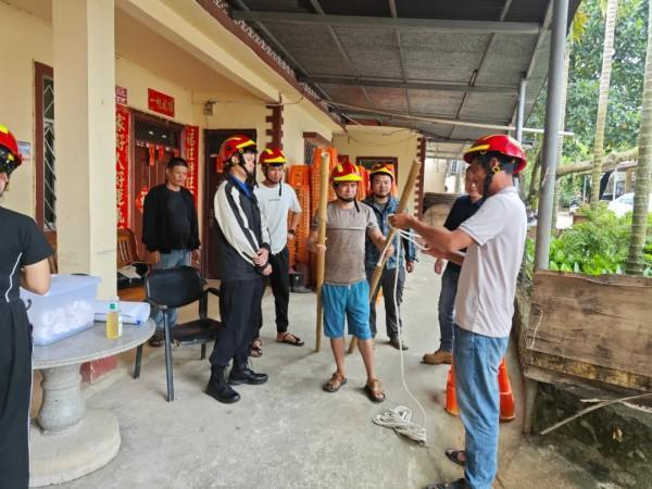 ▲图为马亮村全体学员在开展模拟地震实操演练