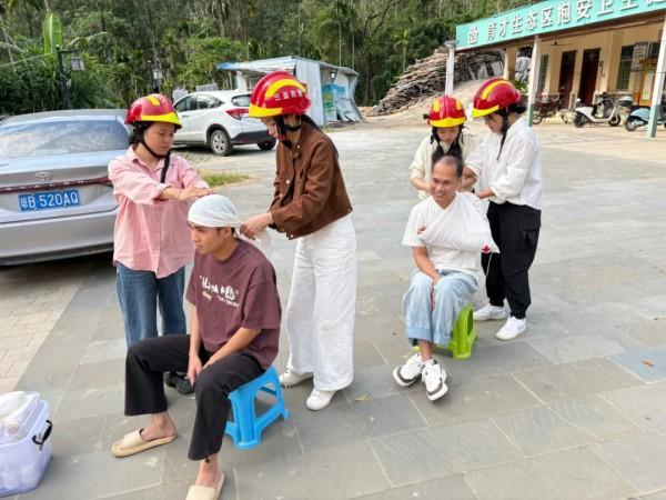▲图为抱安村全体学员在开展模拟地震实操演练