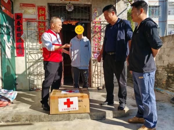 ▲三亚市红十字会副会长吴翅、秘书长黄德健带队慰问崖州区、育才生态区困难家庭。