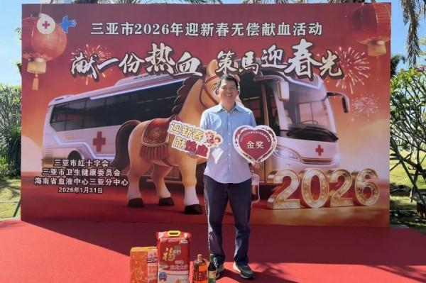 新春将至,年味渐浓。为弘扬人道、博爱、奉献的红十字精神,把社会爱心与新春温暖送到群众身边,近日,三亚市红十字会携手长丰能源等爱心企业开展2026年“博爱送万家”春节慰问活动。活动依托爱心企业、爱心人士捐赠善款,统一采购米、油、新春礼包等生活物资,精准慰问无偿献血金奖获得者、造血干细胞捐献志愿者和困难家庭,以实际行动致敬奉献者、帮扶困难群众,传递人道温情。1月31日,红十字会举办广场无偿献血活动,现场为荣获2022-2023年度无偿献血金奖获得者颁发慰问物资,对他们长期坚持无偿献血、守护生命健康的无私奉献致以崇高敬意。