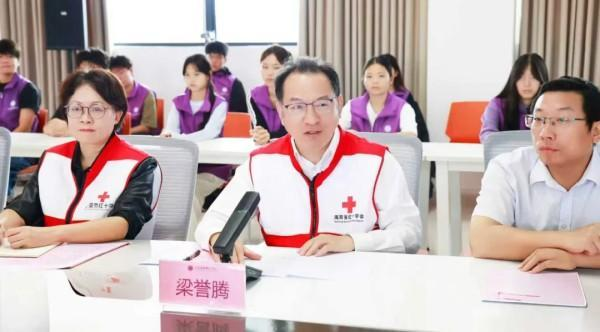 梁誉腾在致辞中对学院红十字会的成立表示热烈祝贺并寄予厚望。他指出,红十字不仅是一种精神,更是一面引领行动的旗帜。高校是培养红十字事业新生力量的重要阵地,加强高校红十字会建设是具有战略意义的举措,必将为“健康海南”注入青春活力。梁誉腾结合全国高校红十字工作座谈会精神,提出三点殷切希望:一是立足护理专业特色,打造“护理+人道服务”融合发展样板,将急救技能培训、老年照护、临终关怀等专业优势转化为服务效能,开发特色鲜明、实效突出的人道服务项目;二是聚焦自贸港建设需求,主动融入全省应急救护体系与健康海南建设大局,开展生命健康教育,组织志愿者深入社区、景区、乡村开展健康服务,让红十字精神在服务民生中彰显价值;三是坚持依法办会,严格依照《中华人民共和国红十字会法》和《中国红十字会章程》健全规章制度,规范会员管理与活动开展,讲好校园红十字故事,凝聚更多师生参与人道事业的热情。