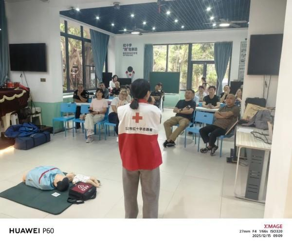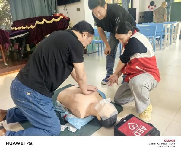 12月15日上午,在凤凰华庭小区内,三亚市红十字会精心组织“一家一个急救员”应急救护培训,这是在小区急救安全屋落成后开展的首期应急救护知识普及培训。24名小区居民和物业工作人员踊跃参与,通过理论学习与实操演练相结合的方式,基本掌握急救技能,为家庭幸福和社区安全增添坚实保障。