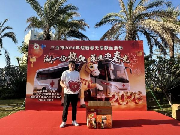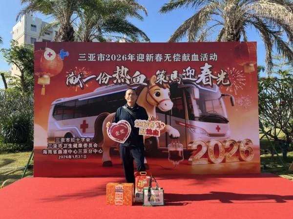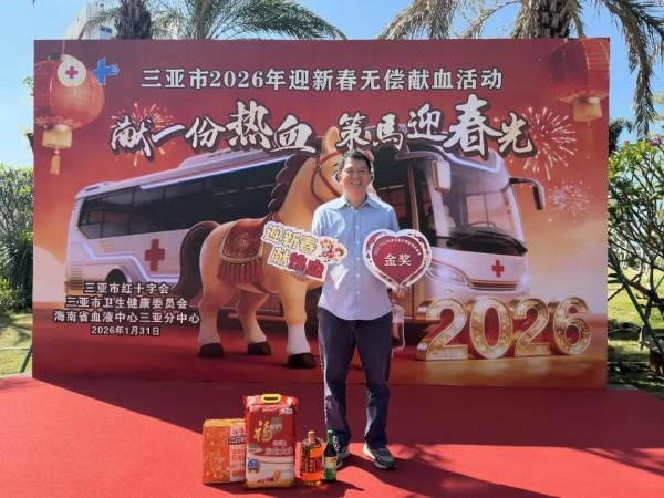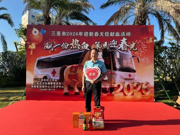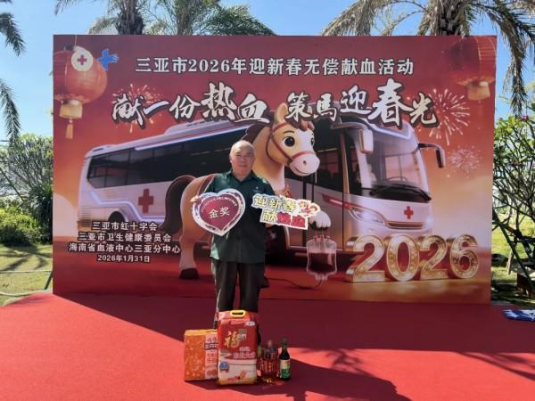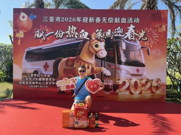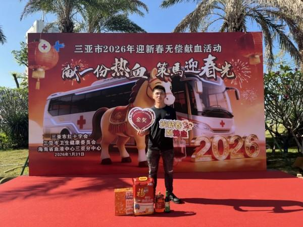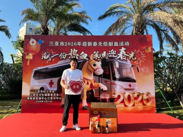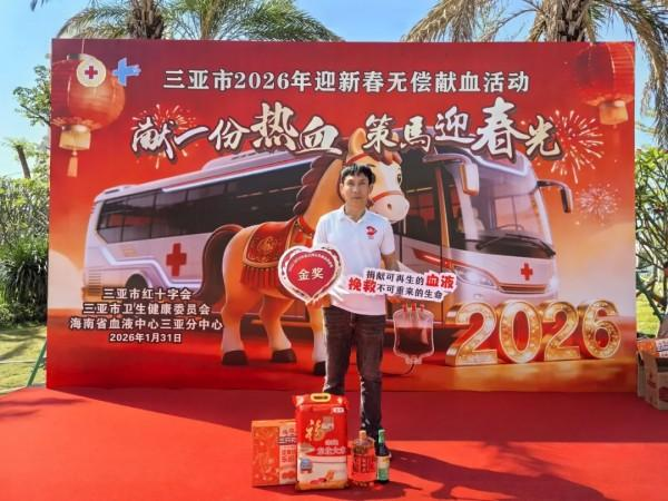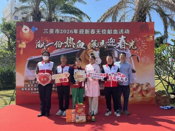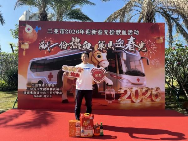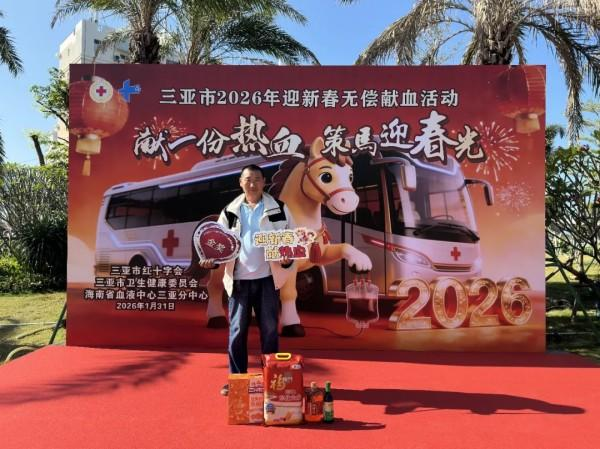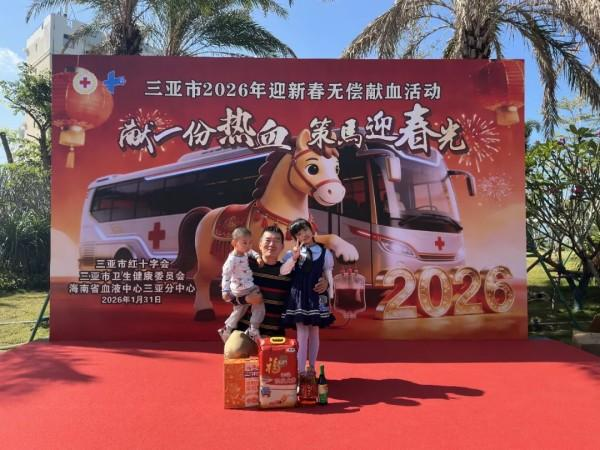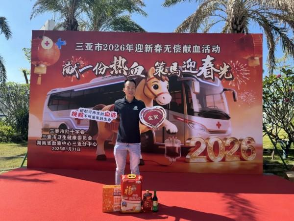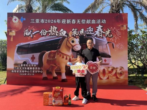 2026年1月31日上午,在三亚湾壹号商场门前广场,三亚市红十字会、三亚市卫生健康委员会、海南省血液中心三亚分中心联合开展“迎新春献热血”无偿献血活动。活动以“献一份热血策马迎春光”为主题,旨在表彰2022—2023年度全国无偿献血奉献奖金奖及终身荣誉奖获得者,同时动员社会各界积极参与无偿献血,切实保障春节期间临床用血需求。