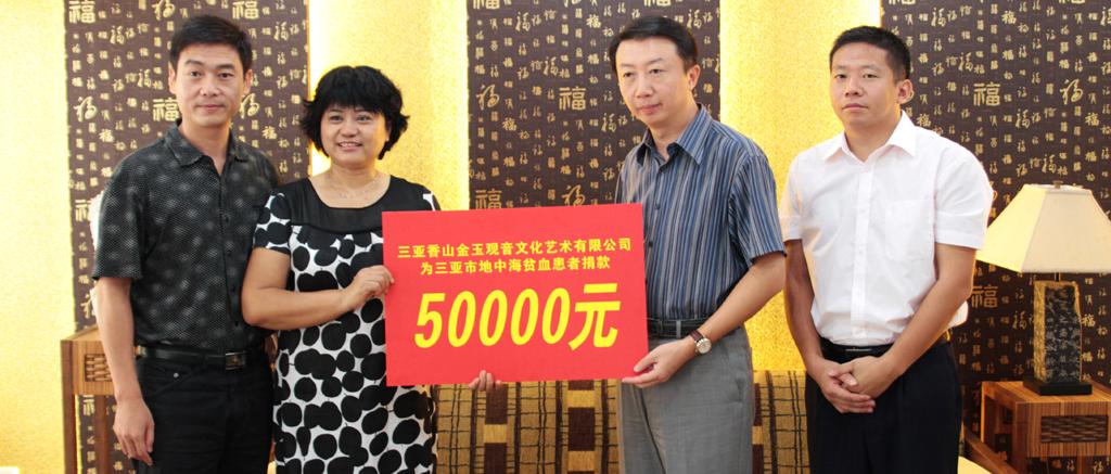2010年7月21日,三亚香山金玉观世音文化艺术有限公司向市红十字会捐赠5万元人民币,作为本市重症地中海贫血患者的脾脏切除手术费用。