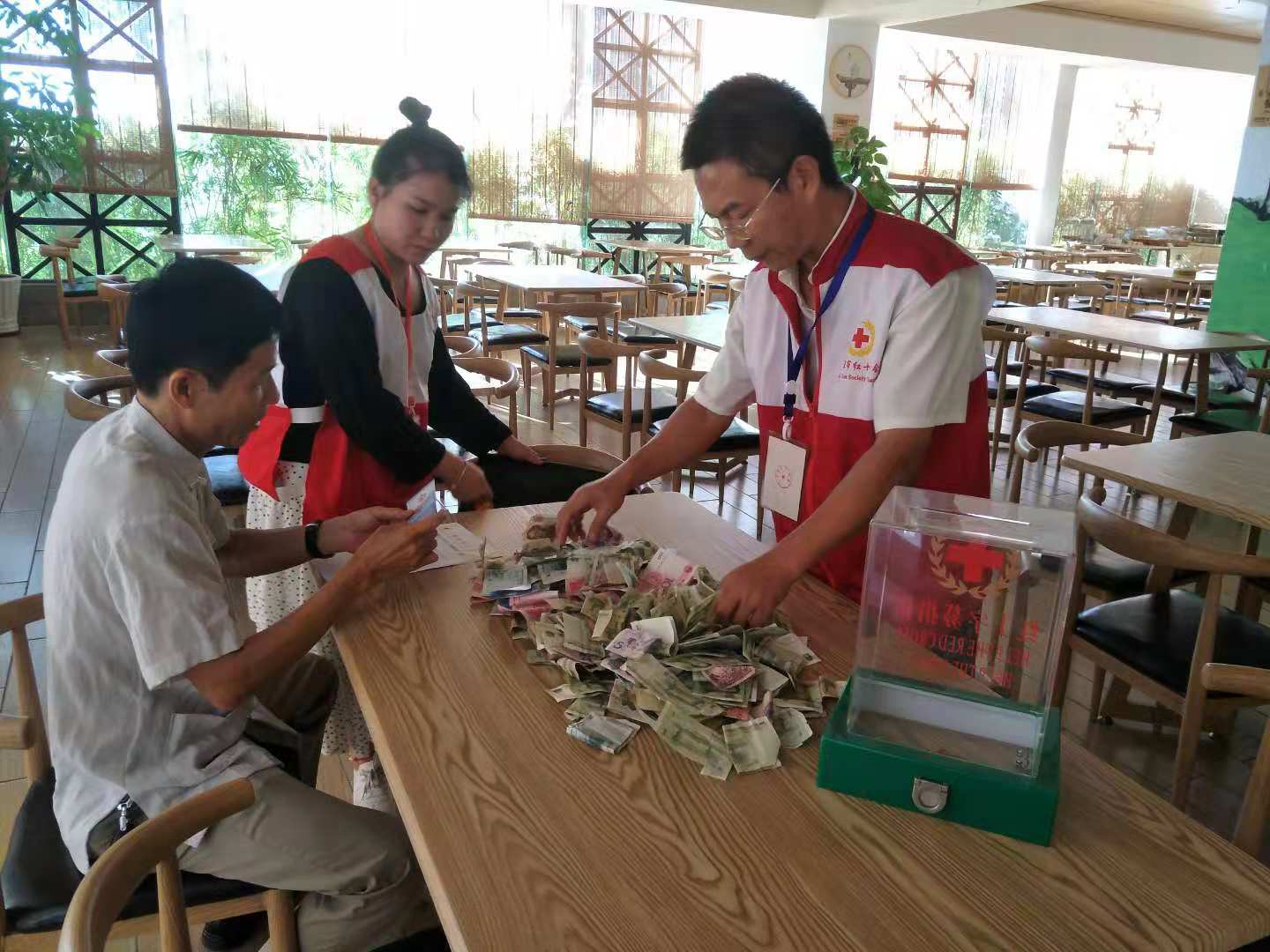 2018年12月3日,在三亚心一境禅意大酒店,市红十字会工作人员与心一境禅意大酒店工作人员清点募捐箱款,共收取红十字募捐箱款2617.4元。感谢心一境禅意大酒店对红十字公益事业的支持。
