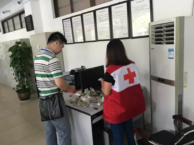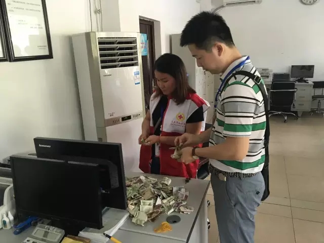 市红十字会工作人员清点募捐箱款