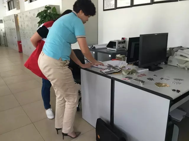 景区工作人员清点募捐箱款