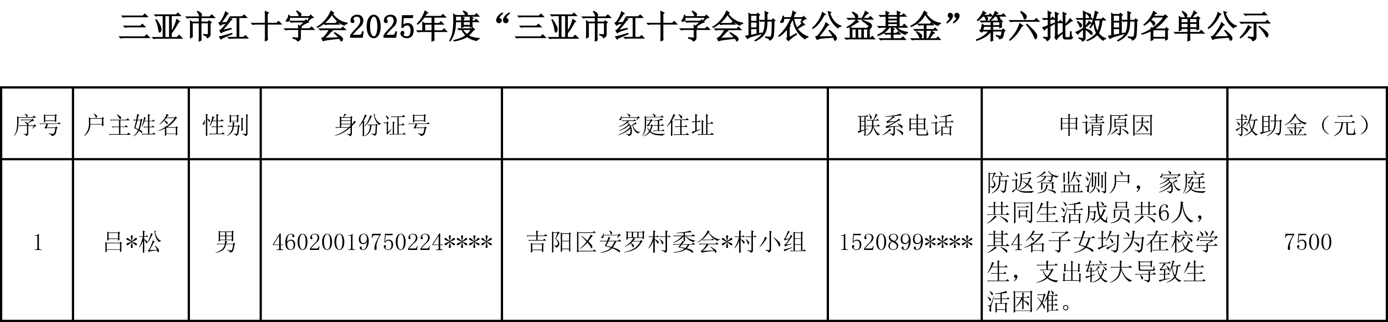 三亚市红十字会2025年度“三亚市红十字会助农公益基金”第六批救助名单公示