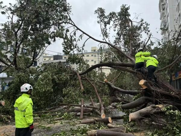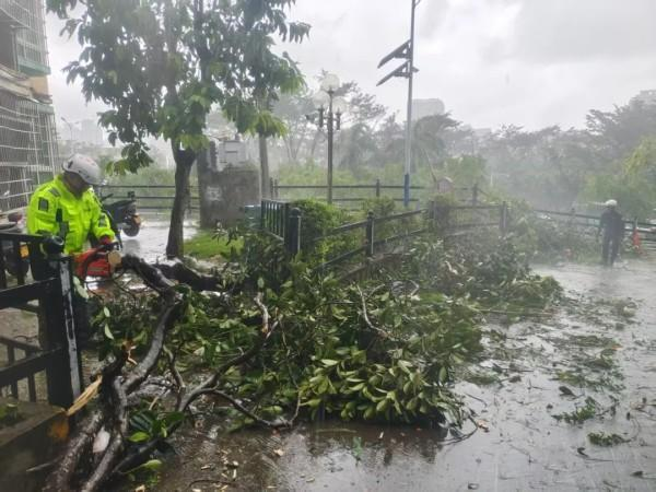 8月25日,台风“剑鱼”过境三亚后6小时,三亚市红十字应急救援中心党支部14名党员组成“党员突击队”,带领40名志愿者分别在月河社区、下洋田社区清理倒伏树木。
