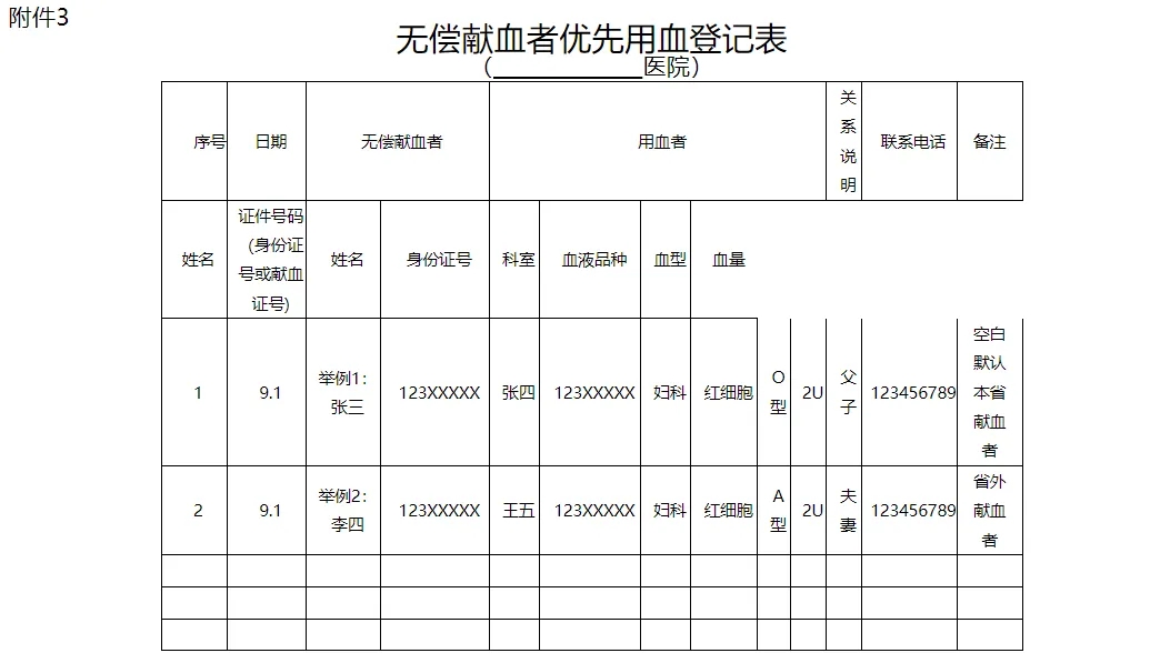 3.无偿献血者优先用血登记表