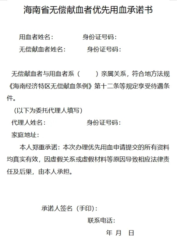 附件:1.海南省无偿献血者优先用血承诺书